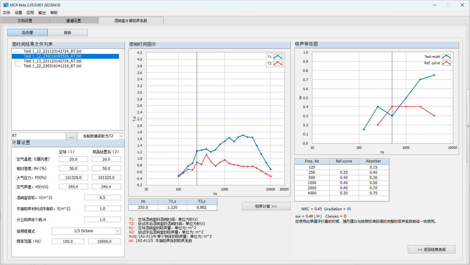MCR-ABSR模塊為混響時(shí)間數(shù)據(jù)的后處理模塊,用于混響室法測(cè)量材料…